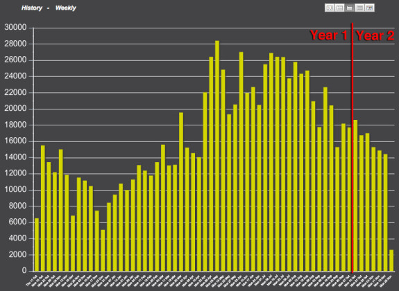 But perhaps even more exciting, SDOT reports that bike traffic over the bridge is up 28 percent versus October and November 2012. Indeed, every weekly count since passing the one-year mark has seen higher bike use than the same week last year. It will be interesting to see if this pattern is maintained over time, but it’s a very promising start.