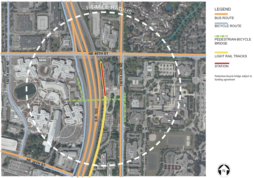 Microsoft will fund a walking and biking bridge over Highway 520, connecting the western part of their campus and the 520 Trail to the future location of the Overlake light rail station.